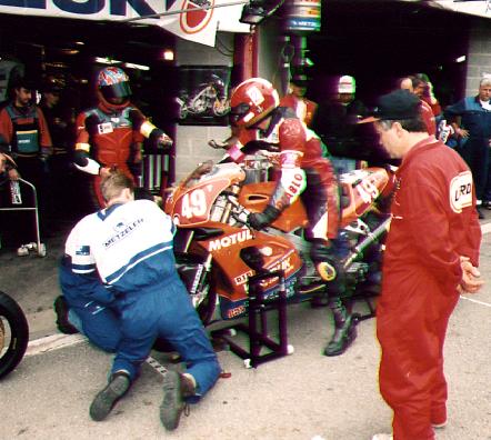 Thierry had no endurance experience but was one of the 'students' of the French 'Ducateam' which trains young talented riders for endurance racing. Hubert had several years of 24 hour racing experience and was rider in the V-Twin Team Retina France.
