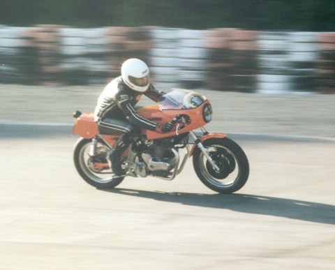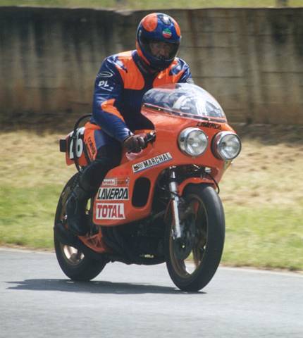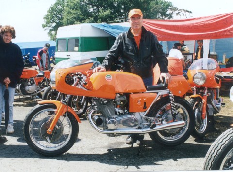 Mr. Piero Laverda riding the 1978 Barcelona winning 500 Formula racer